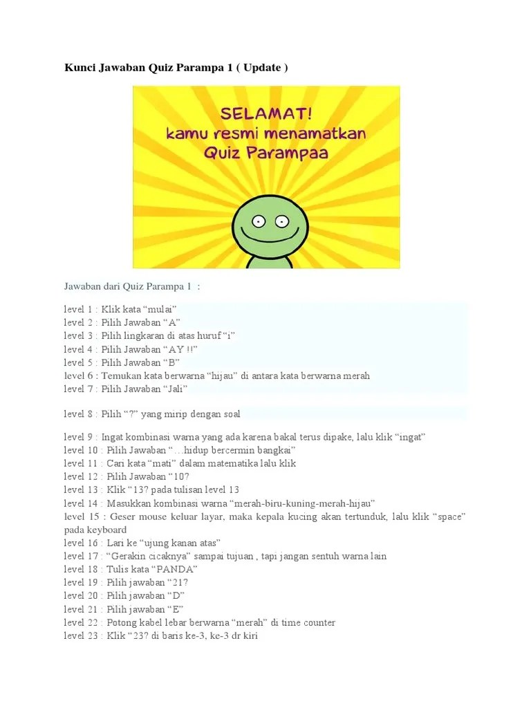 Jawaban Quiz Parampa / Kunci Jawaban Quiz Parampaa Level 1 100 - Password jawaban quiz parampaa 1 200.